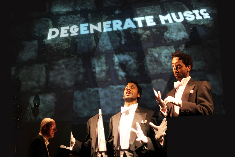 Degenerate Music brings together song, visuals and spoken word in an effort to recover the lesser-known works of composers silenced by the Nazi regime. The show is a reimagining of the infamous Entartete Musik (Degenerate Music) exhibition of 1938, intended by the Nazi government to alert the German public to “inferior and ultimately dangerous” forms of music, particularly jazz and Jewish music.