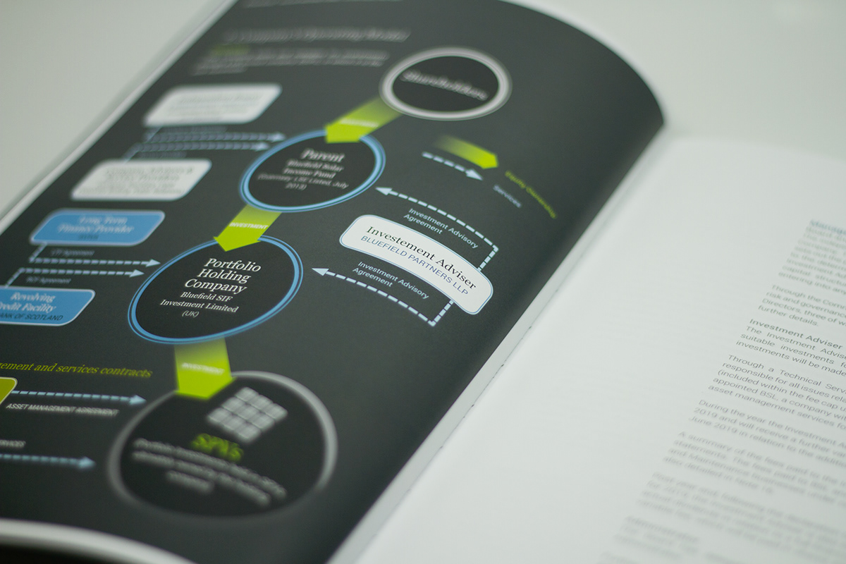 Working with the team at Bluefield Partners LLP, a 100+ page semi-annual report with financial statements is produced, printed and distributed to shareholders in September and February each year.