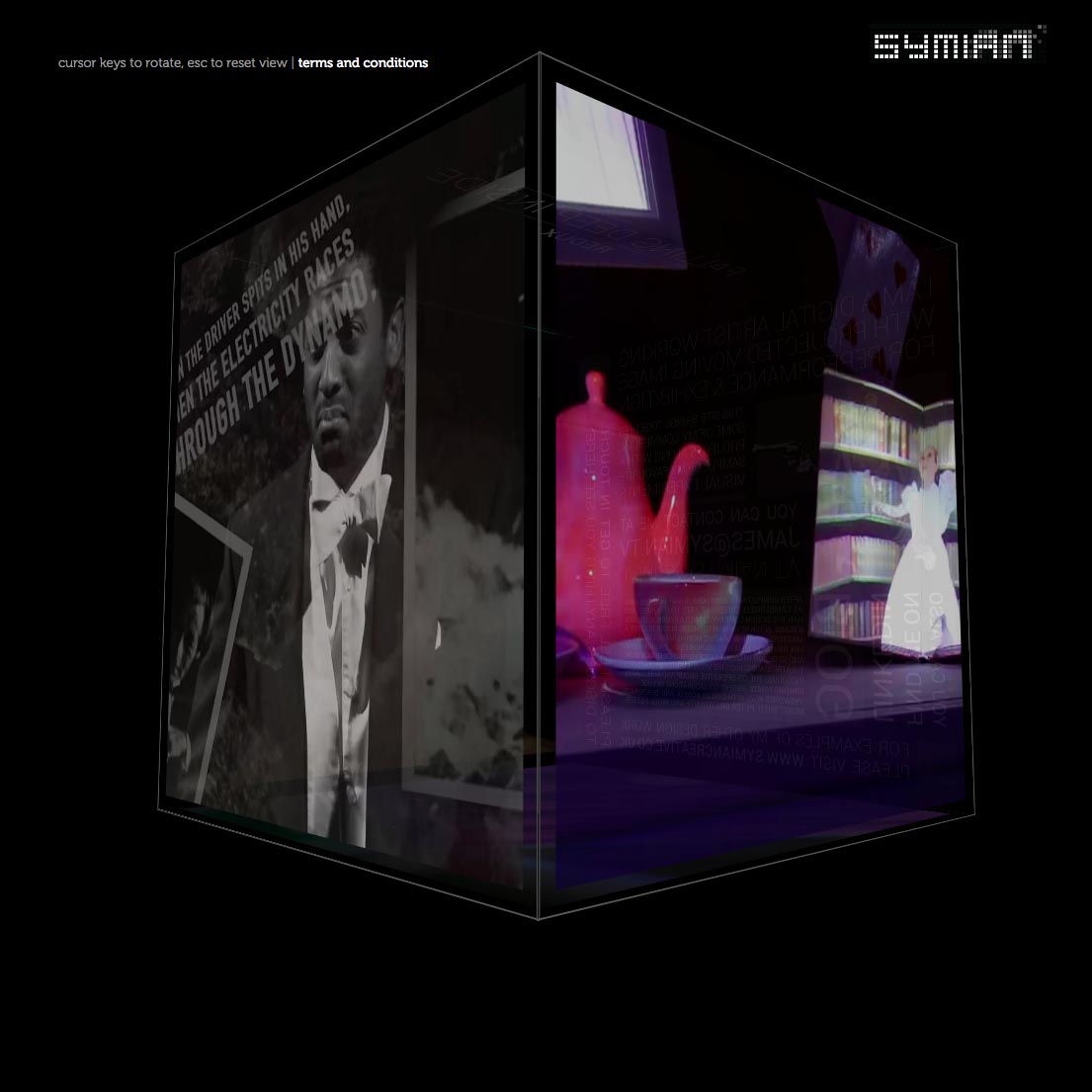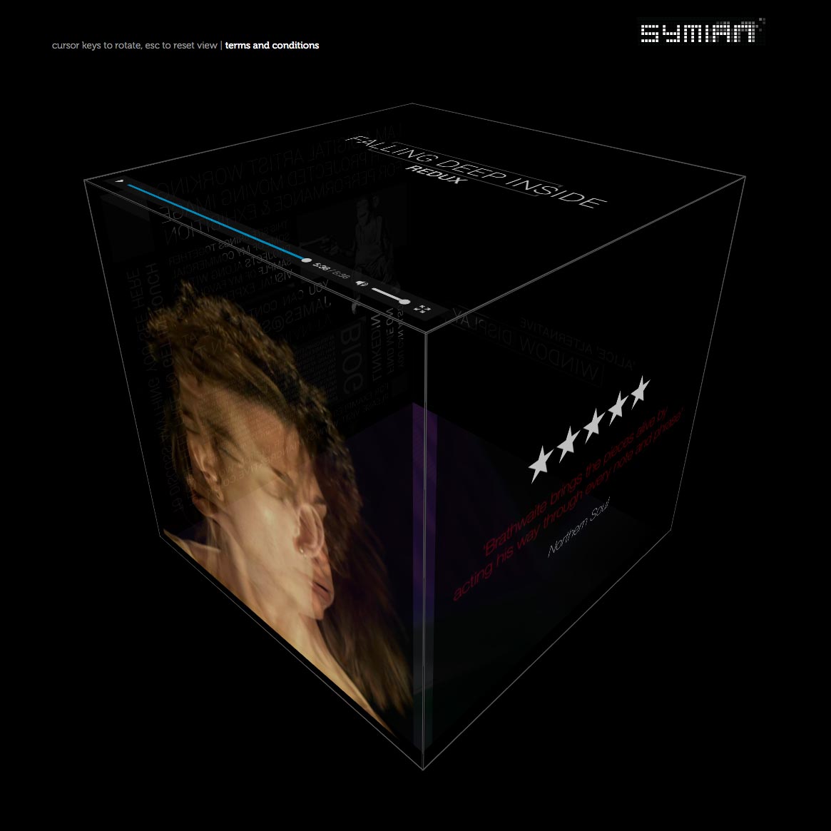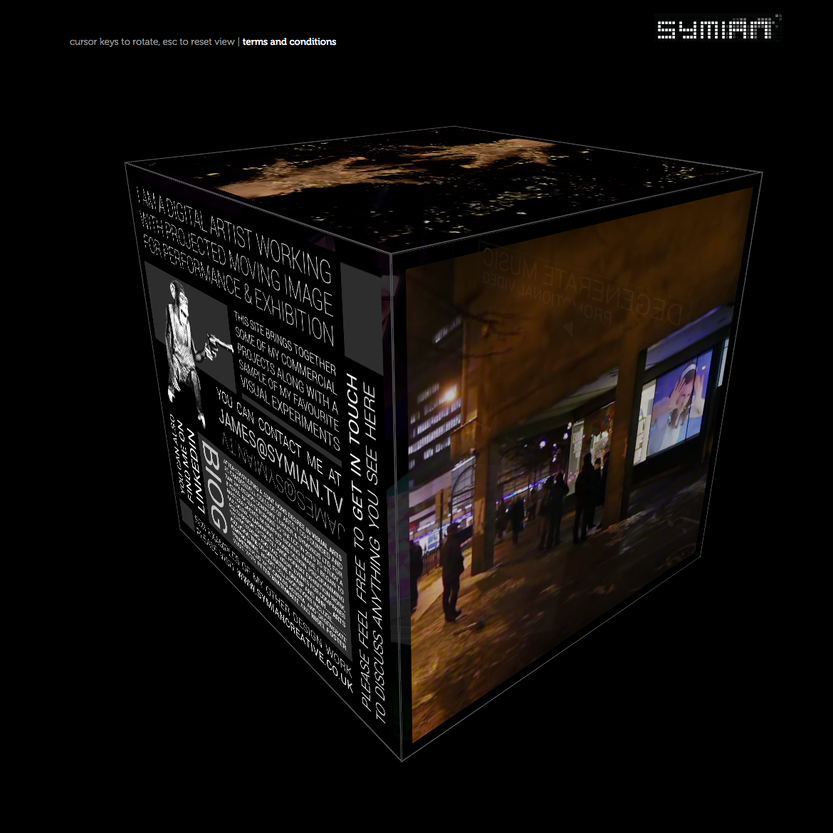 This was an experimental website used to showcase Symian video content. Playing with a square video format allowed me to present 6 videos at the same time on a rotating cube, making use of gesture controls to flip between the faces. The controls worked specially well on mobile devices and was an interesting way of presenting video rich material without lots of endless scrolling.