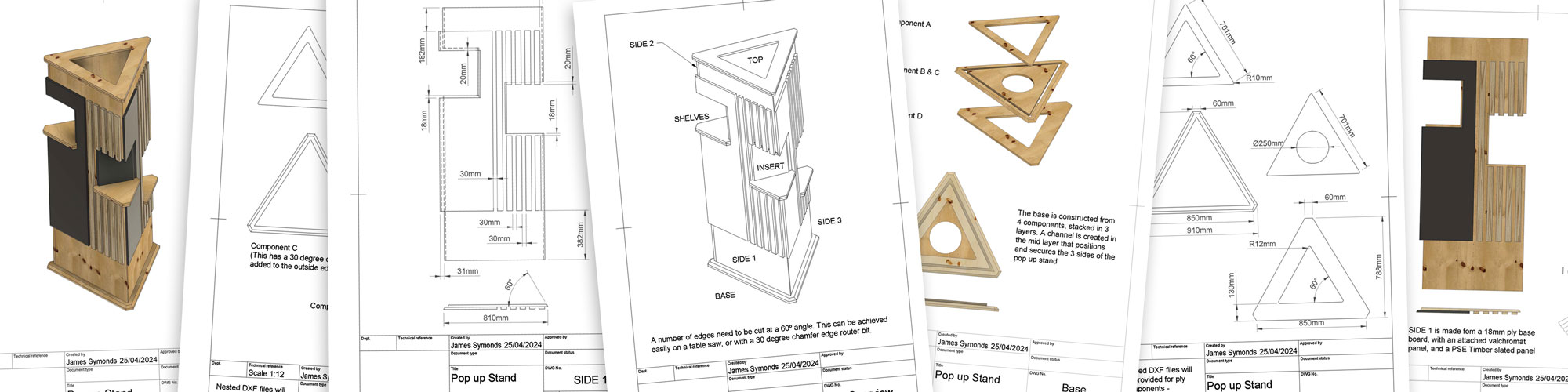 The stand has 3 flat panels that slot into a triangular base, creating a sturdy display without the need for fixings or hand tools to assemble. The panels are slender enough to be easily transport in a car, making it ideal to be used a smaller roadshows.