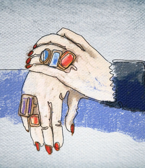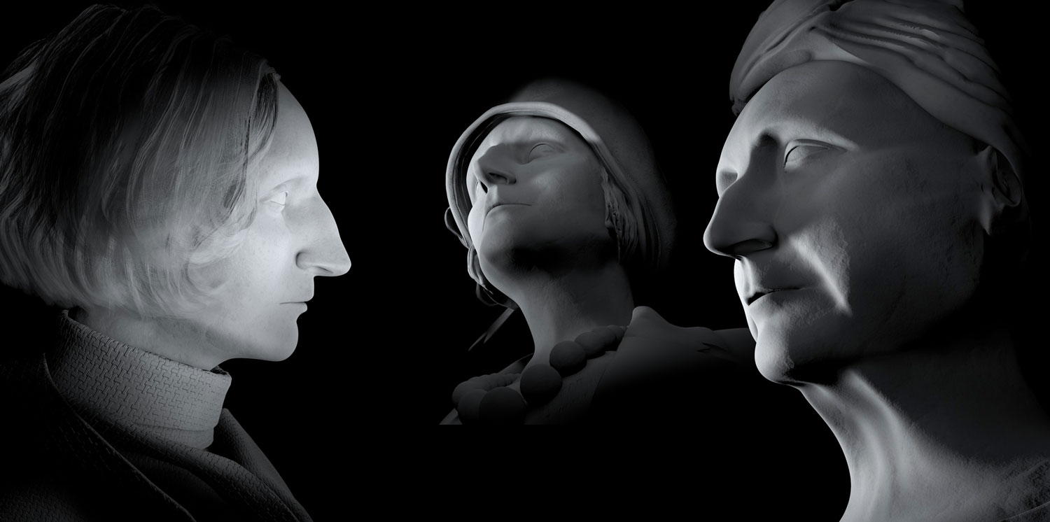 Drawing inspiration from the original curtains created for Façade by Frank Dobson ( 1922) and John Piper (1942) - I created a series of digital curtains to be used as a backdrop for the extracts taken directly from the original performance. With such a striking appearence, I wanted to show Edith throughout the different stages of her life. Creating a series of 3D models, I then searched through the experimental video work of long time collaborator Etienne Gillfillan, and married up his video sketches to the atmosphere and setiment of the remaining musical pieces. Finally, hand drawn skectches are employed to illustrate Edith's reminisces and storytelling, creating three distinct motifs that run through the entire performance.